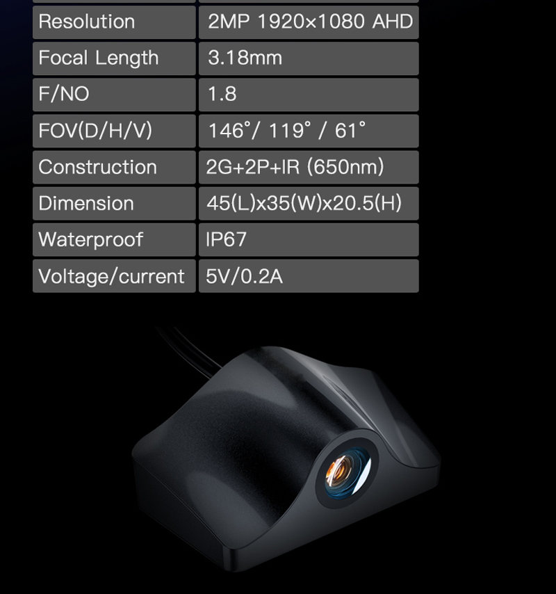 HD 1280x720p (25 кадров/с.) AHD Кодек H.264 Угол обзора 140° |