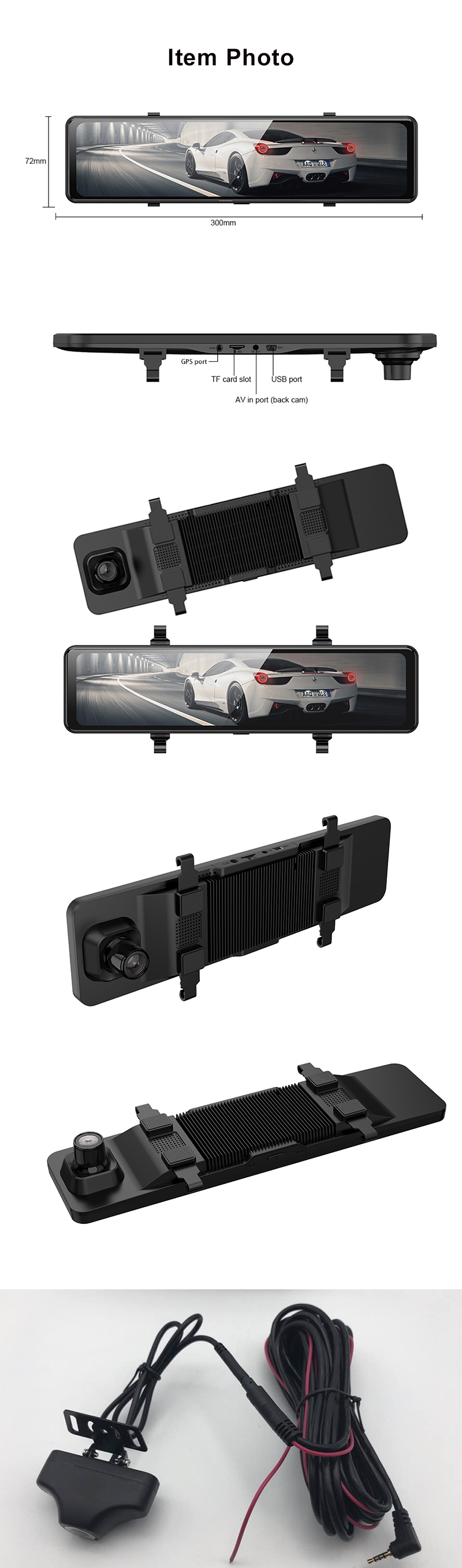 Зеркало Phisung S22 — 1 шт. Зарядное устройство — 1 шт. Камера заднего вида — 1 шт. Крепление — 2 шт. Руководство пользователя — 1 шт. |